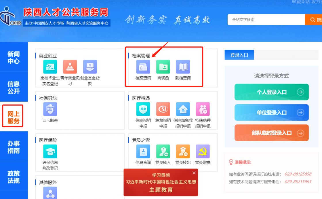搜索户籍所在地人才网或人才交流中心网站,可以登录陕西人才公共服务网,按照网站指引找到对应的查询窗口即可查询档案到档情况。